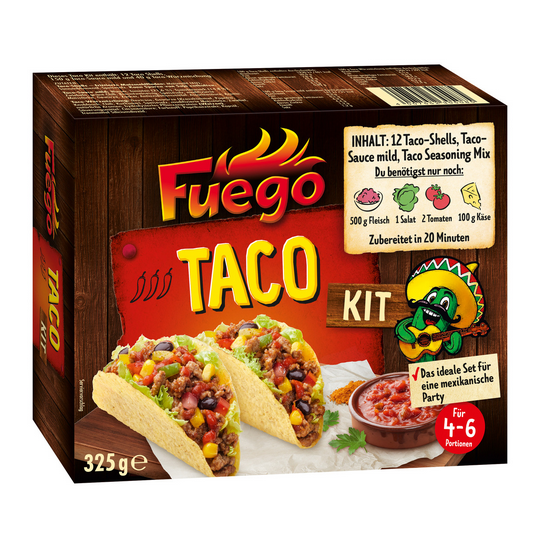 Inhalt 12 Taco-Shells; Tomatensauce Mild, Taco Seasoning-Mix