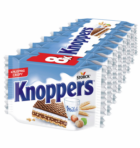 Der leckere Klassiker von Knoppers. Wenn morgens um halb zehn der erste Schwung Arbeit getan ist, dann ist Knoppers genau das Richtige: knusprig gebackene Waffeln, köstliche Milch- und zartschmelzende Nugatcremefüllung, verfeinert mit knackig gerösteten Haselnuss-Stückchen. Knoppers schmeckt immer und ist die leckere, kleine und dabei nahrhafte Stärkung für zwischendurch. Ob zu Hause oder unterwegs, in der Runde oder für sich allein - ein Knoppers passt immer.