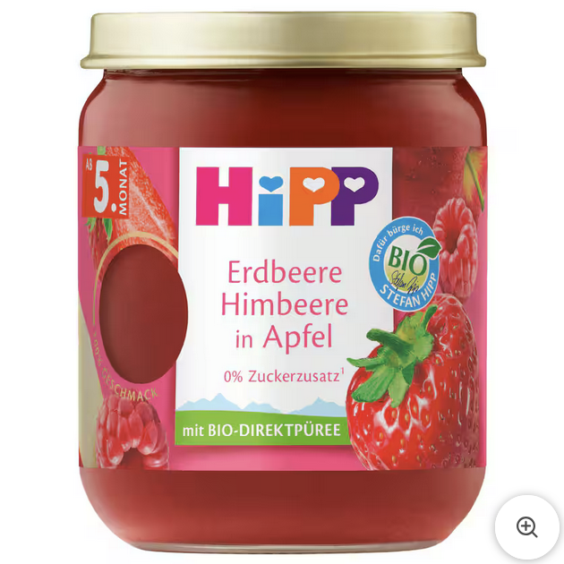 Hipp Bio Püree Erdbeere Himbeere in Apfel 160g