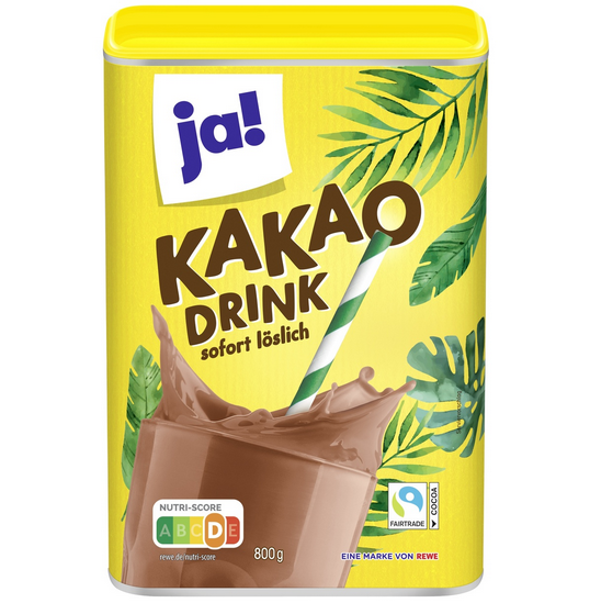 KAKAODRINK mit Traubenzucker. Kakaohaltiges Getränkepulver. Eine Marke von REWE.