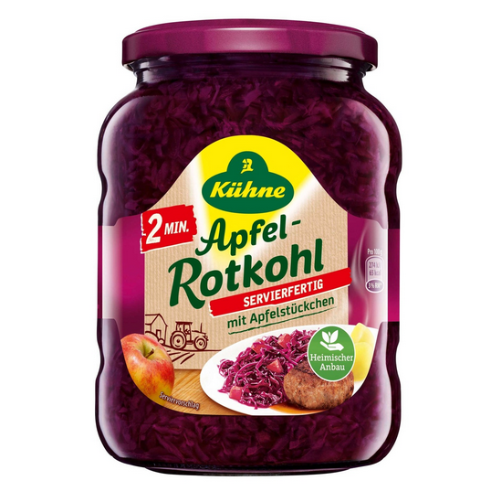Für die schnelle Küche: fertig gekochter und gewürzter Apfelrotkohl, nur 1-2 Minuten im Topf oder in der Mikrowelle erwärmen.