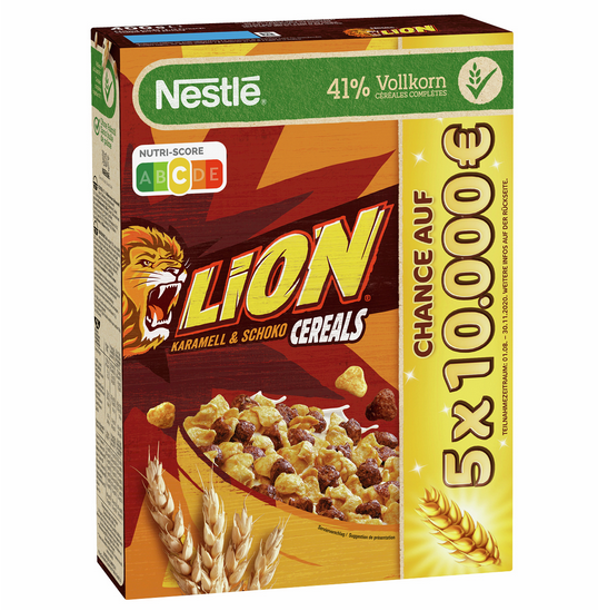 41,3% VOLLKORNWEIZEN, WEIZENMEHL, Zucker, Glukosesirup, Sonnenblumenöl, 3,0% Schokolade (fettarmer Kakao*, Zucker, Kakaomasse*), Calciumcarbonat, Salz, natürliche Aromen, Emulgator (Lecithine), Karamellzuckersirup, Eisen, Niacin, Pantothensäure, Vitamin D, Vitamin B6, Thiamin (Vit. B1), Riboflavin (Vit. B2), Folsäure. Kann MILCH und NÜSSE enthalten. *Rainforest Alliance-zertifiziert.