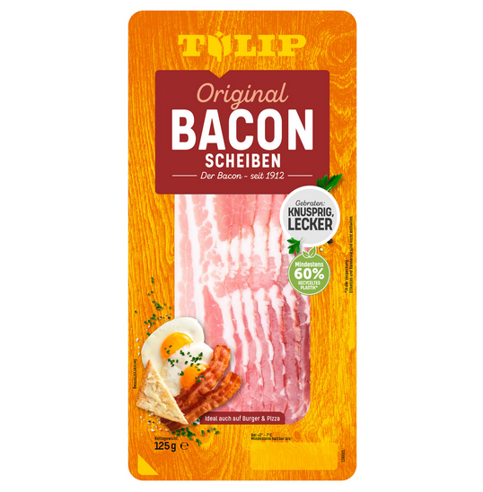 Nicht nur zum Frühstück ist der TULIP Bacon ein echter Genuss. Ob zum Garnieren, zum Umwickeln und überbacken oder zum Grillen mit Bacon werden viele Gerichte zu Ihren neuen Leibgericht. Unser Bacon gelingt immer besonders knusprig.